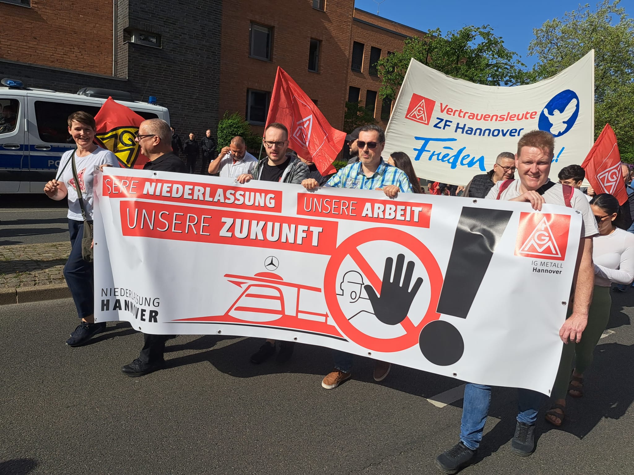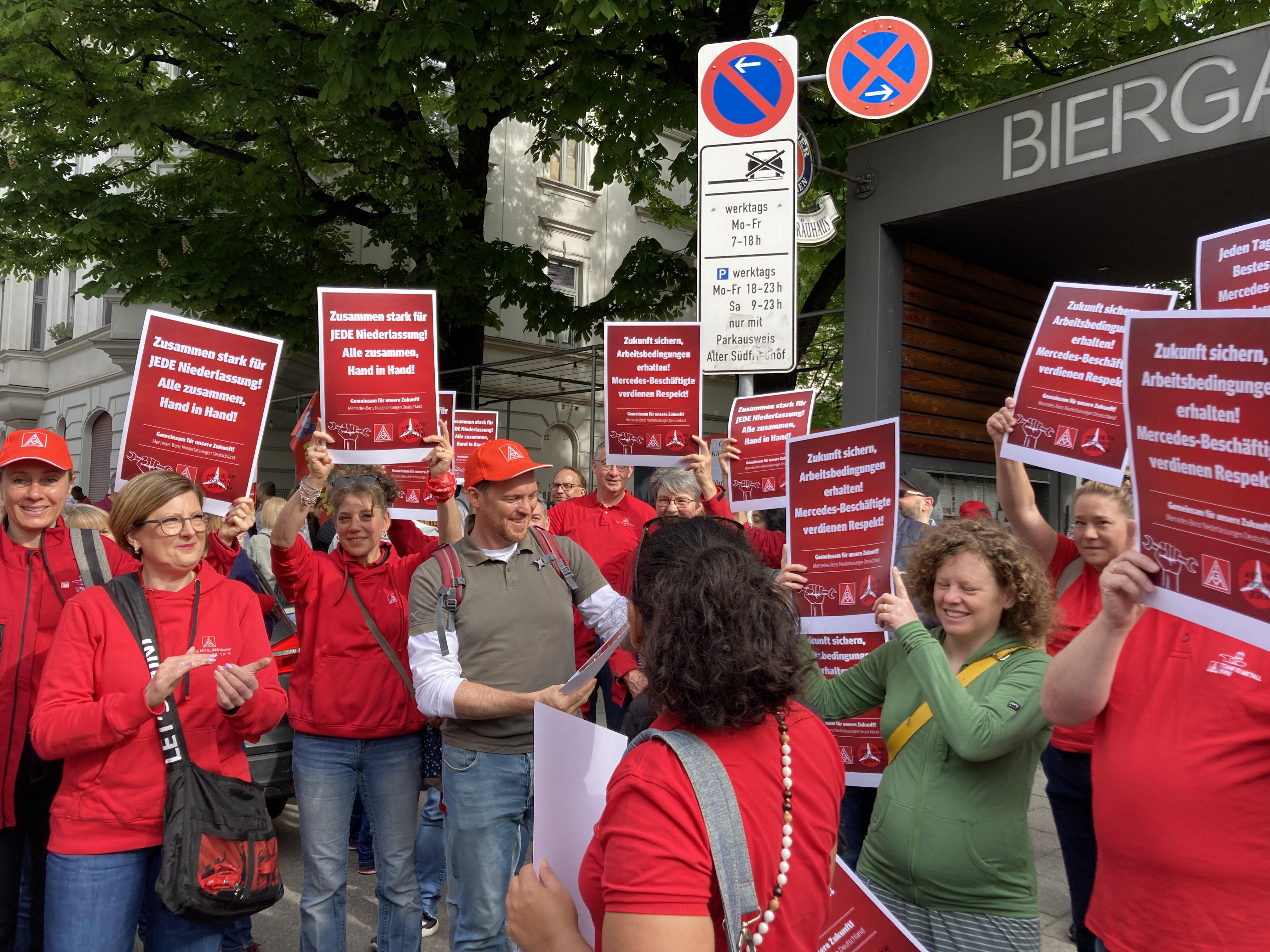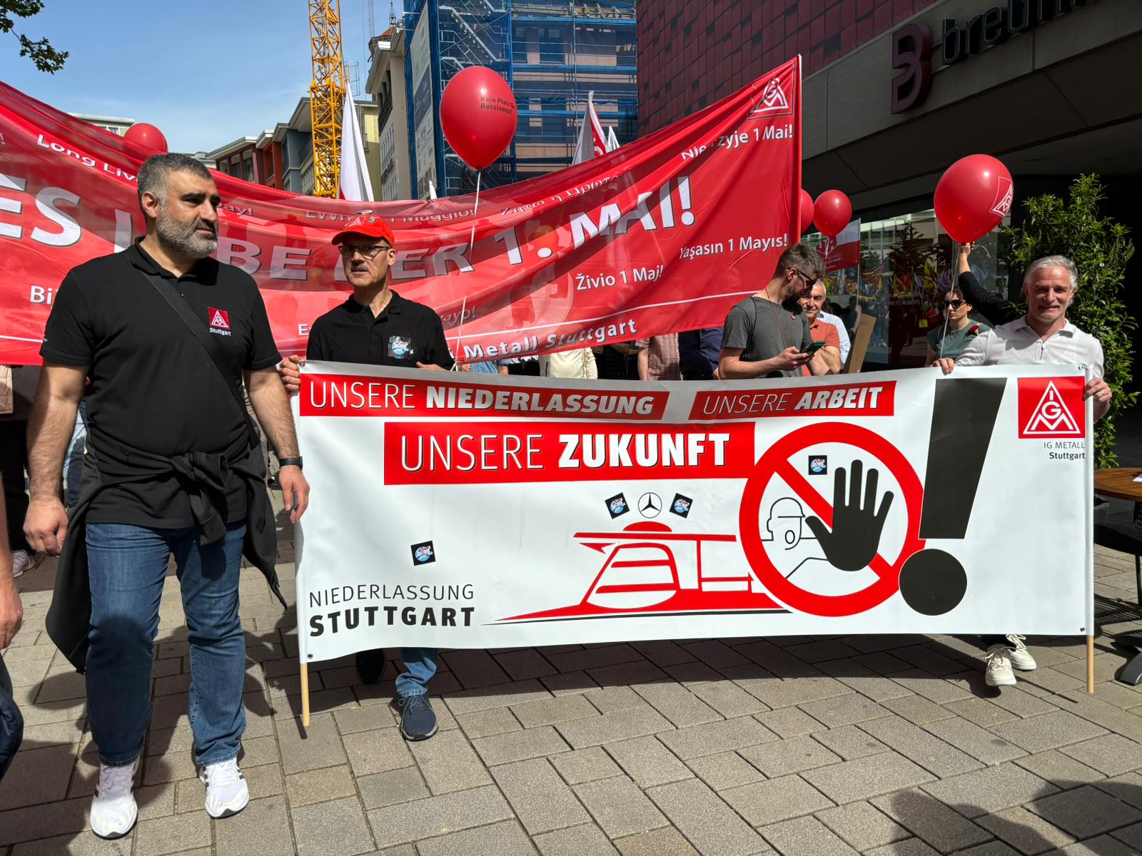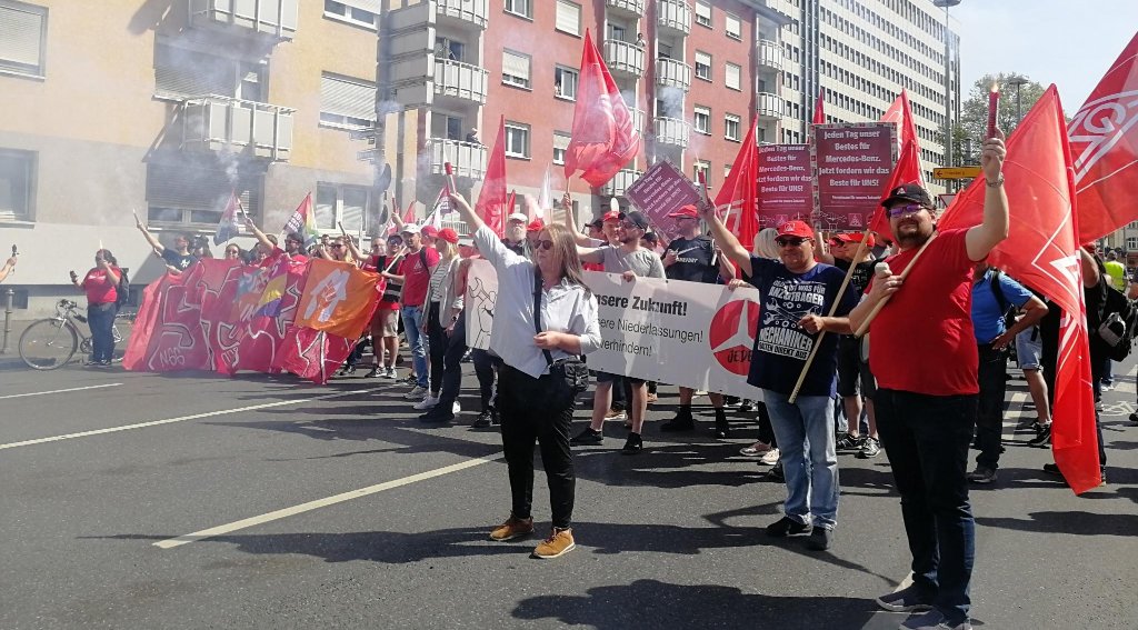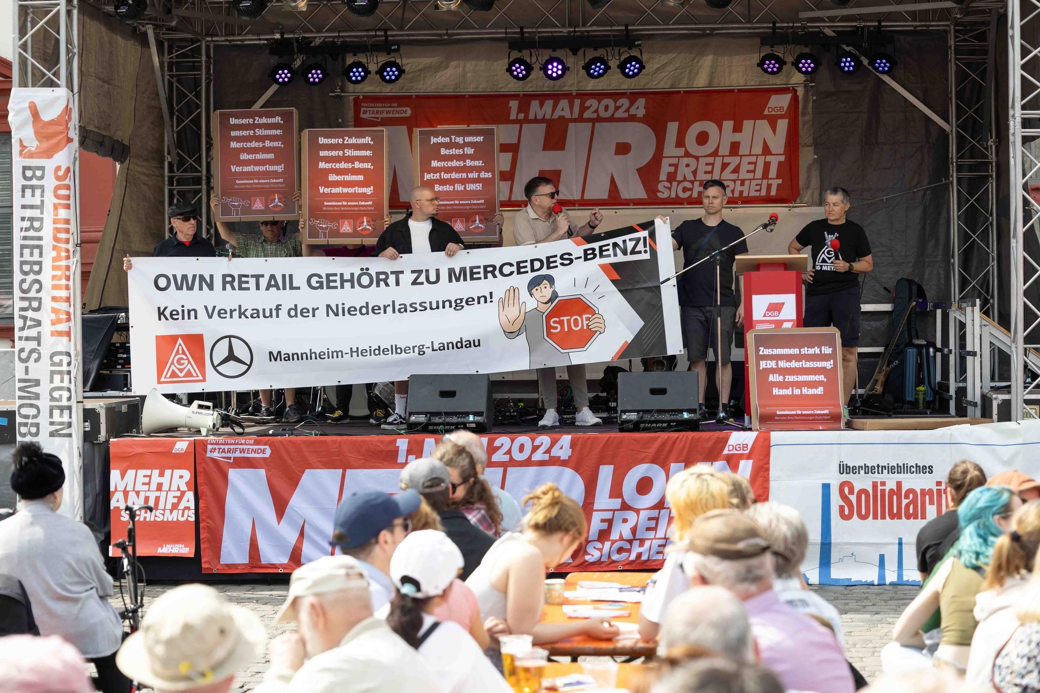 1. Mai 2024: Proteste gegen geplanten Verkauf der Mercedes-Benz-Niederlassungen.