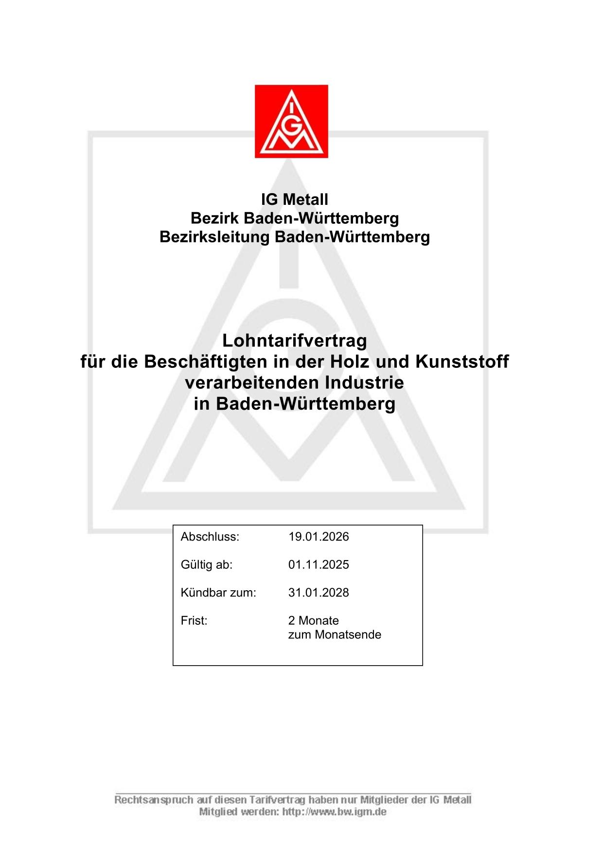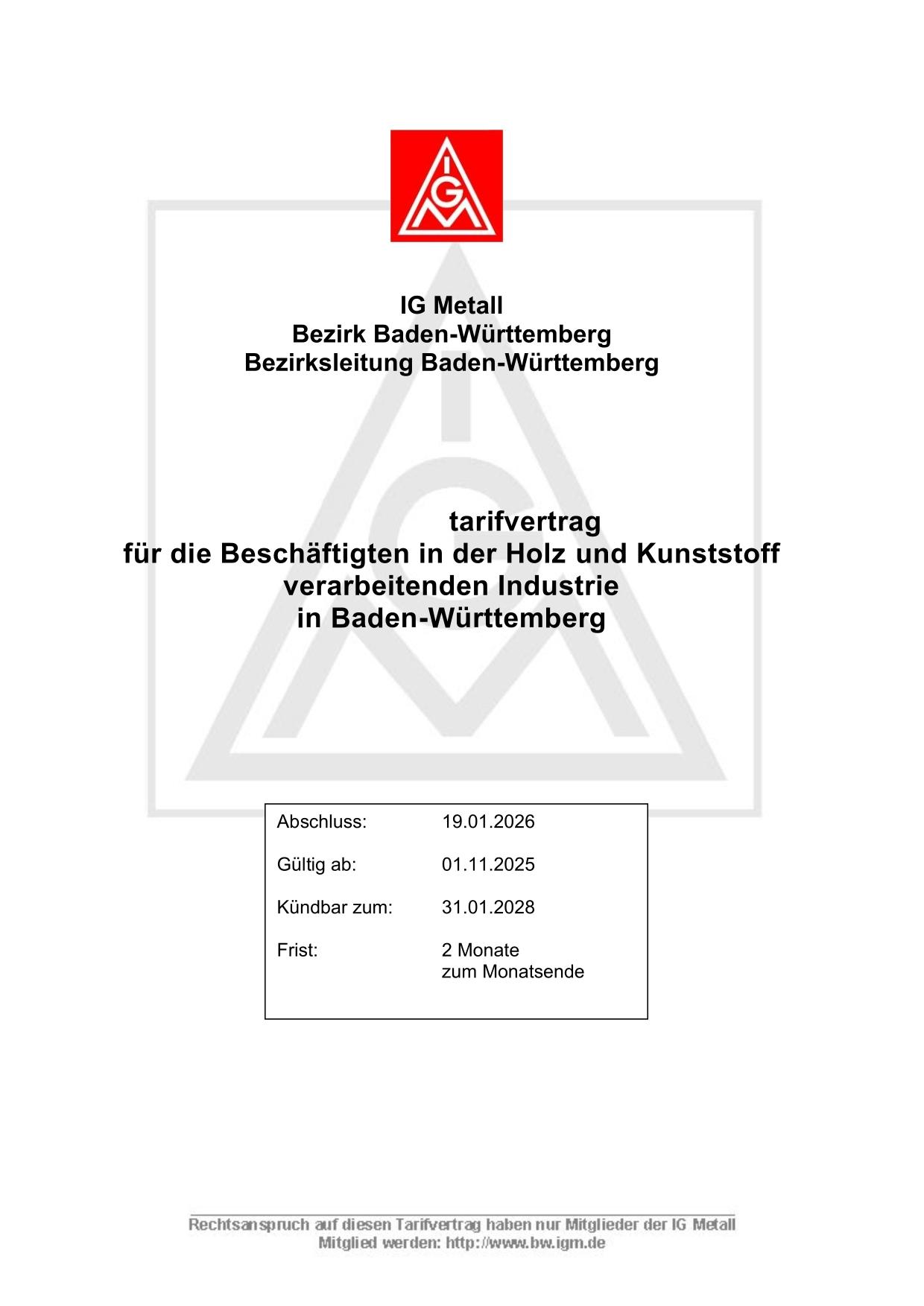 Tarifverträge im Wortlaut in der Holz- und Kunststoffindustrie in Baden-Württemberg.